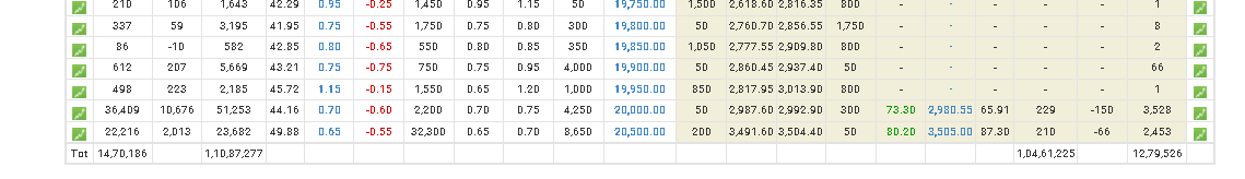 In above pcr ratio is 12,79,526/14,70,186= 0.87 which is below 1 slightly which is moderately bearish
