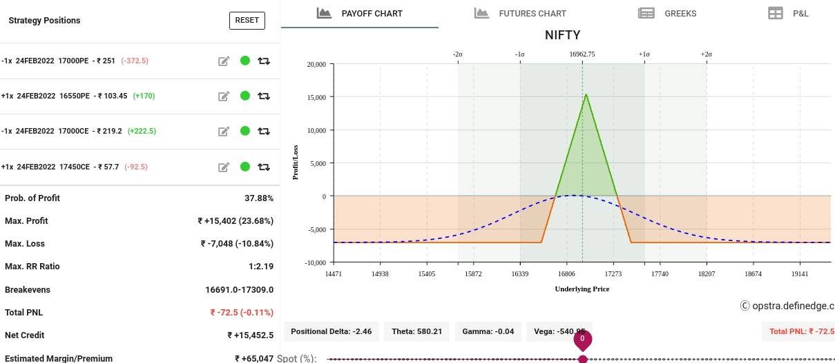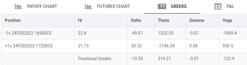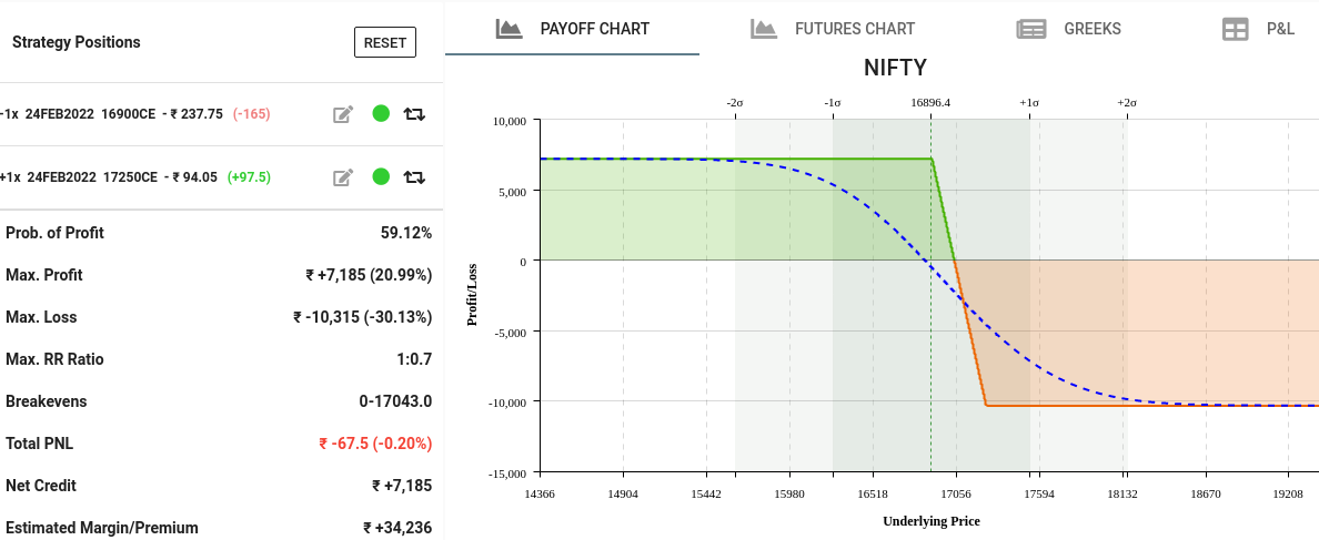 - Below example we are selling lower strike 16900 call and buying higher strike 17250 Call.