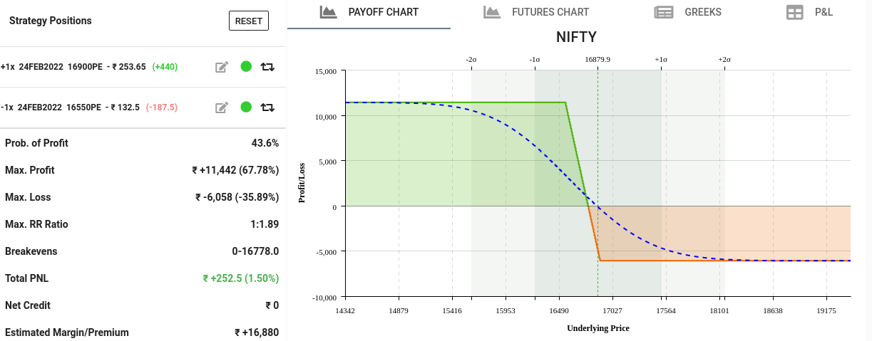 - below example we are buying 16900 lower strike Put and selling even lower 16550 strike Put.