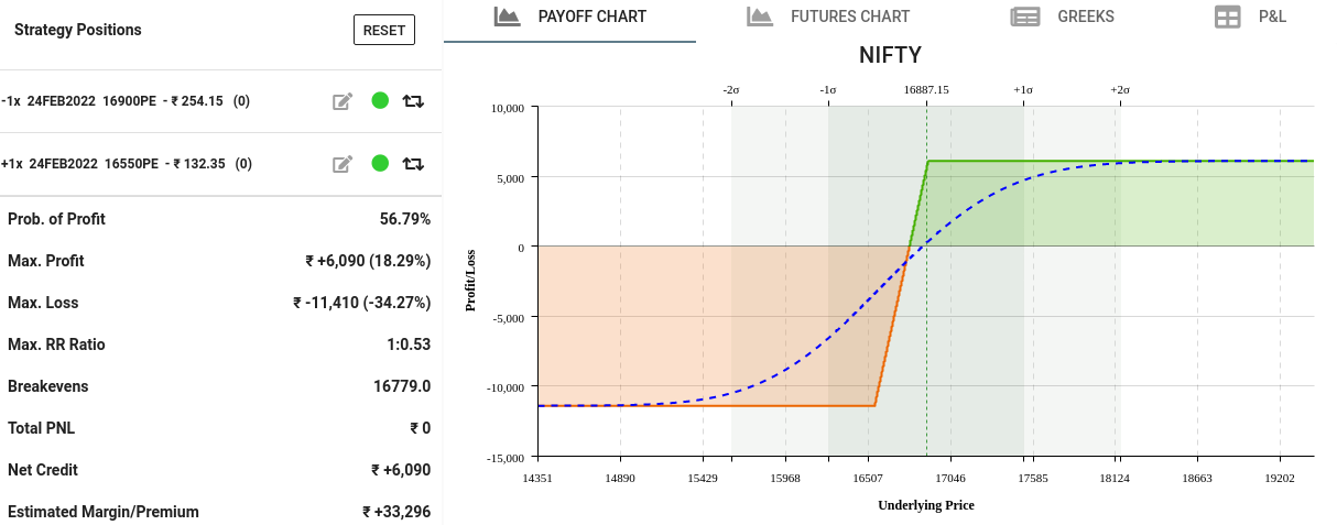 - below example we are selling 16900 lower strike Put and buying even lower 16550 higher strike Put.
